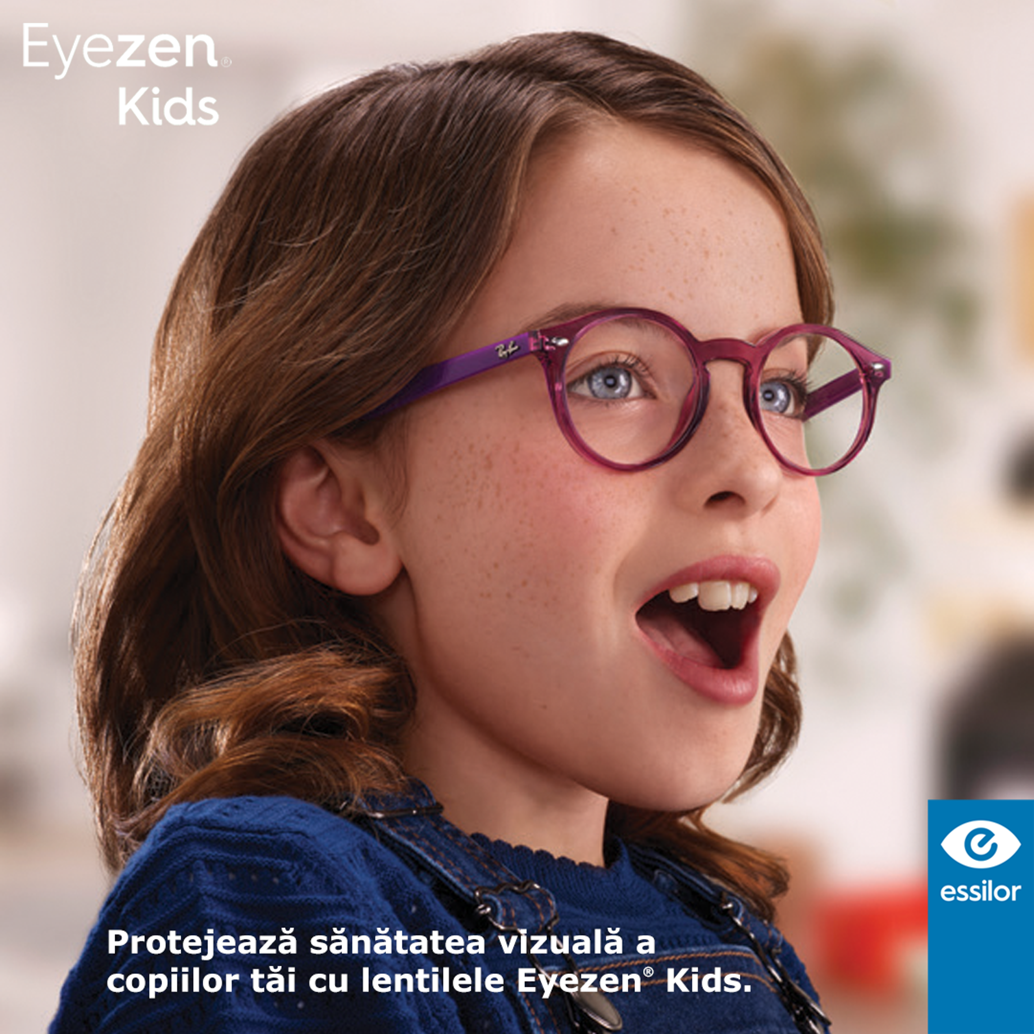 Lentilele Eyezen Dual OptimTM Kids sunt special create pentru a se potrivi nevoilor de vedere ale copiilor cu vârste situate între 6 și 12 ani. Acestea au la bază 3 elemente importante: forma feței, axa de concentrare și distanța față de obiectul privit. Cu un grad ridicat de confort, lentilele Eyzen Kids oferă un câmp vizual cu spectru cu 60% mai larg, astfel că cei mici beneficiază de o suprafață mai mare a lentilelor (sus, jos și periferic).